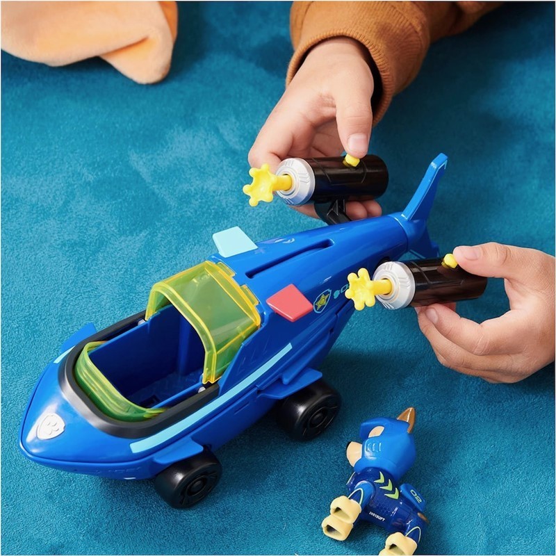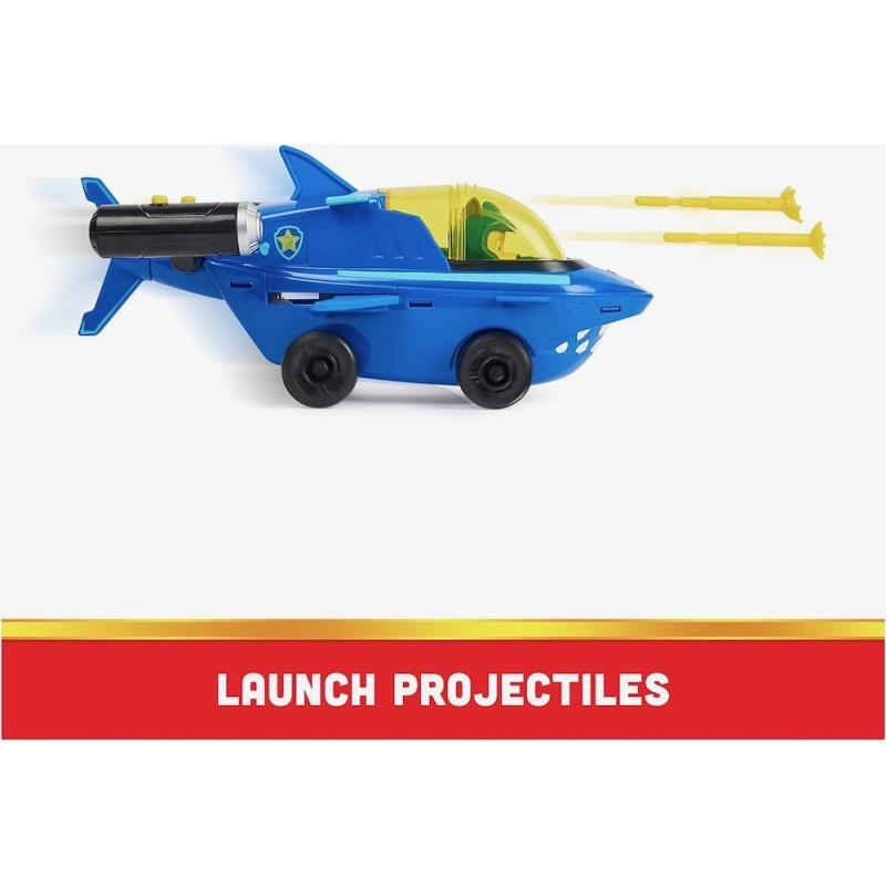 El vehículo de rescate tiburón de Chase se transforma rápidamente en el modo de rescate. Solo tienes que deslizar el cierre de la parte de arriba del vehículo para activar las aletas y la aleta dorsal, antes de correr al rescate.