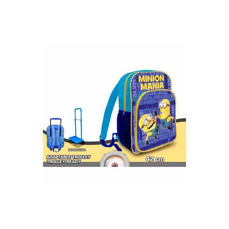 Mochila de 42 cm de alto, adaptable a trolley con diseño de los Minions, con Kevin y Bob Con bolsillo frontal grande con cierre de cremallera Tirantes acolchados Trolley no incluido