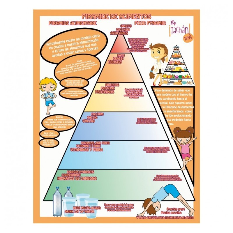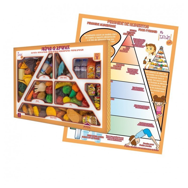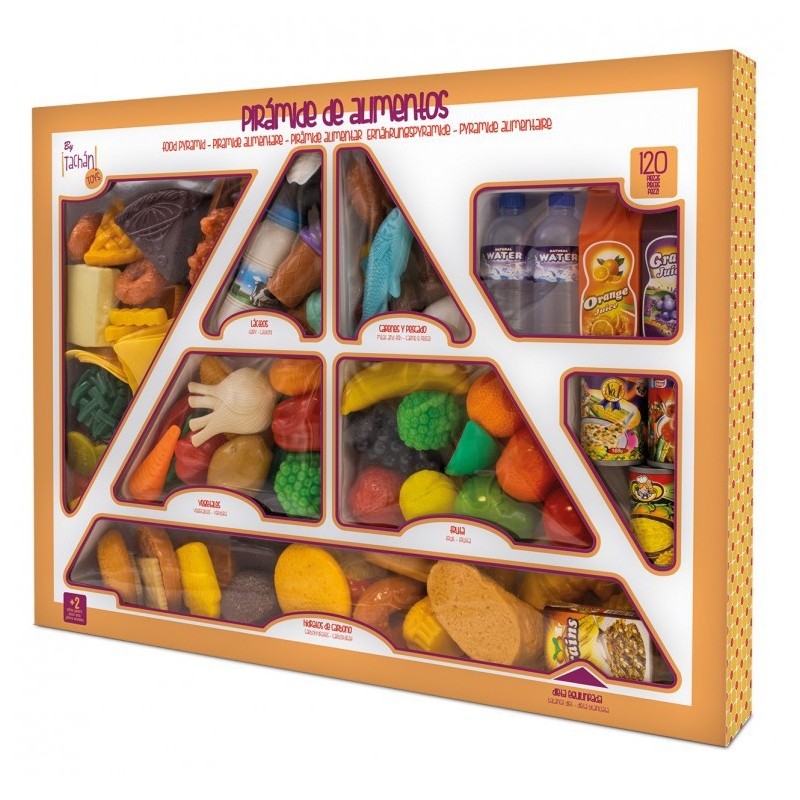 Edad recomendada: +3 años. Completo set de alimentos que contiene 120 piezas. Para los perfectos cocineros y cocineras tenemos un set de comiditas perfecto, la pirámide alimenticia. Con estos juguetes no solo jugaran a hacer perfectas recetas, también estarán aprendiendo lo importante que es comer bien y sano. Un surtido de alimentos repartidos de un modo educativo para que cojan hábitos saludables. Van a disfrutar con un kit súper completo donde están representados los productos más importantes. Un gran ejemplo que aprender jugando es posible.