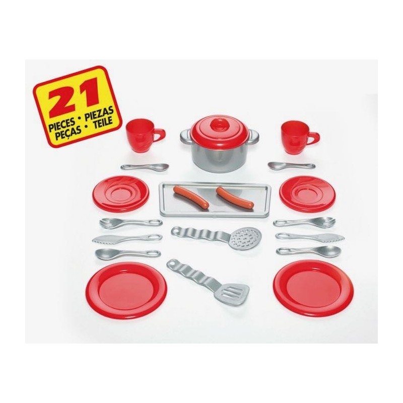 Una gran cocina infantil totalmente equipada con horno, placa de cocinar, campana extractora, fregadero, lavavajillas, frigorífico, sonido real de cocción y 21 accesorios incluidos. Dimensiones: 102 cm. de alto x 150 cm. de largo x 34 cm. de ancho. Edad recomendada: +3 años.