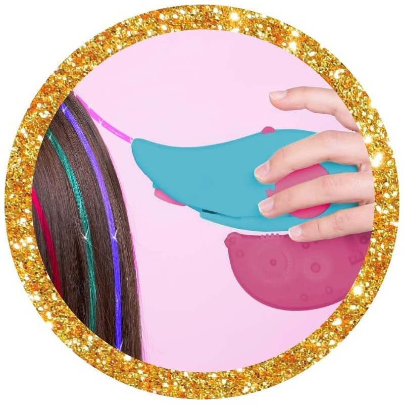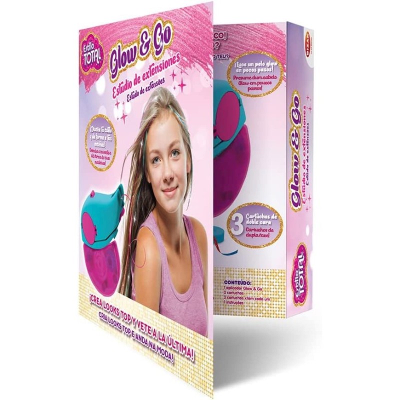 Cada estilo es único, ¿cuál es el tuyo? El Estudio de Extensiones Glow & Go es un increíble kit que te permite personalizar y decorar tus mechones de pelo en cuatro sencillos pasos. Llévatelo a cualquier parte y ¡luce un pelo Glow! ¡Diseña tu estilo y da forma a tus extensiones! Edad recomendada: +8 años.