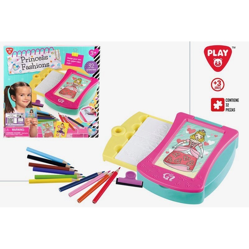 JUEGO DISEÑO MODA PRINCESAS. 32 piezas para diseñar la moda de tus princesas. Edad recomendada: +3 años.