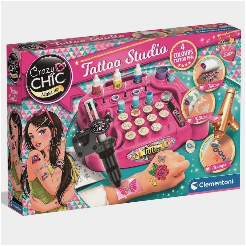 Para los amantes de los tatuajes, un kit súper chulo para crear increíbles tatuajes a mano o con la ayuda de plantillas. Gracias al bolígrafo especial para el cuerpo con puntas de colores intercambiables, las niñas pueden divertirse creando sus propios tatuajes, dibujándolos a mano o ayudándose con plantillas. También contiene pinturas para el cuerpo para colorear los tatuajes, esponjas, aplicadores, plantillas y un libro de tatuajes con dibujos, consejos y hojas en blanco para tus tatuajes favoritos. Desarrolla la creatividad y la destreza manual. Edad recomendada: +6 años.