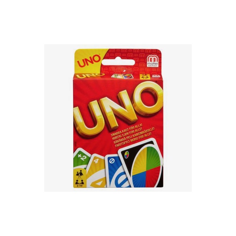 El objetivo de este juego es quedarse sin cartas en la mano, pero antes de ganar, cuando a alguien le queda una sola carta, debe gritar ¡UNO! De dos a diez jugadores. Edad recomendada: +7 años.
