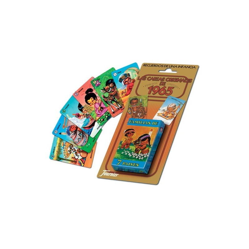 Redescubre el Juego de cartas infantiles clásicas Familias de 7 Países. La baraja de Cartas Fournier Familias de Siete Países es el cláscio juego de cartas para niños que conserva el diseño original de 1965. Edad recomendada: +3 años.