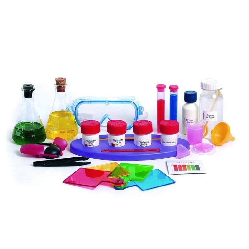 El juego de química más completo, con más de 150 experimentos. Sigue el libro guía y aprende a medir el PH, crea un volcán con refresco de cola y mucho más. Edad recomendada: a partir de 10 años.