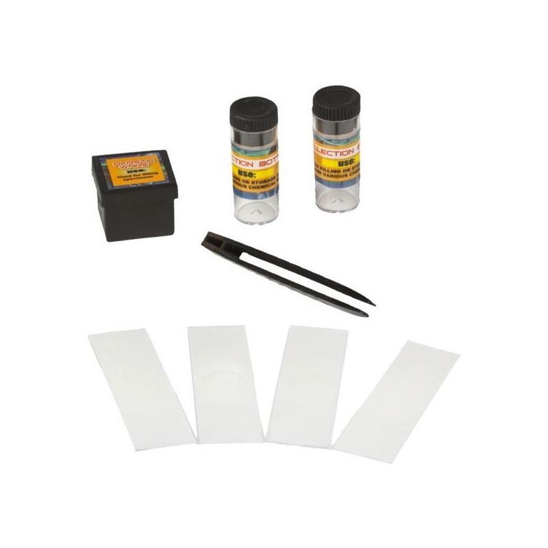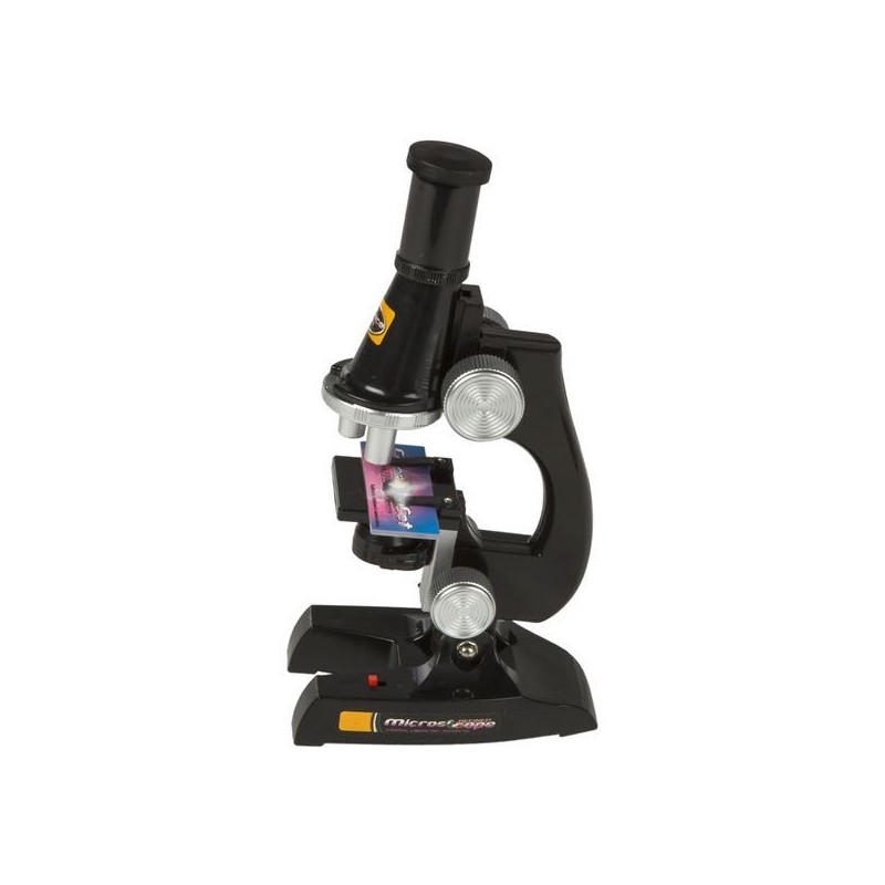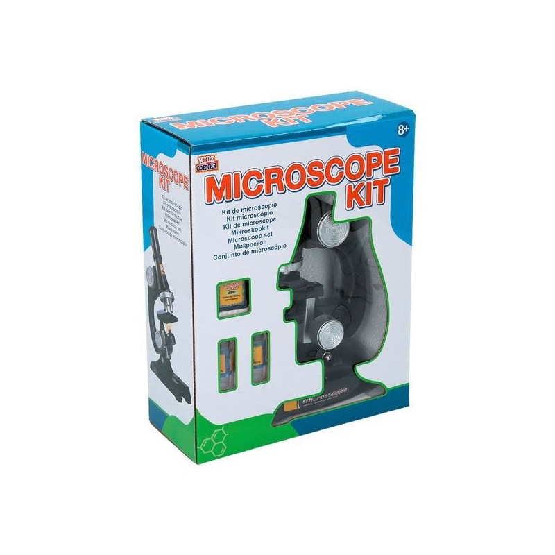 Kit de microscopio con botes para muestras, portaobjetos y pinzas. Con luz. Edad recomendada: a partir de 8 años.