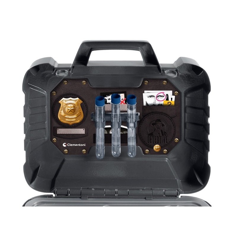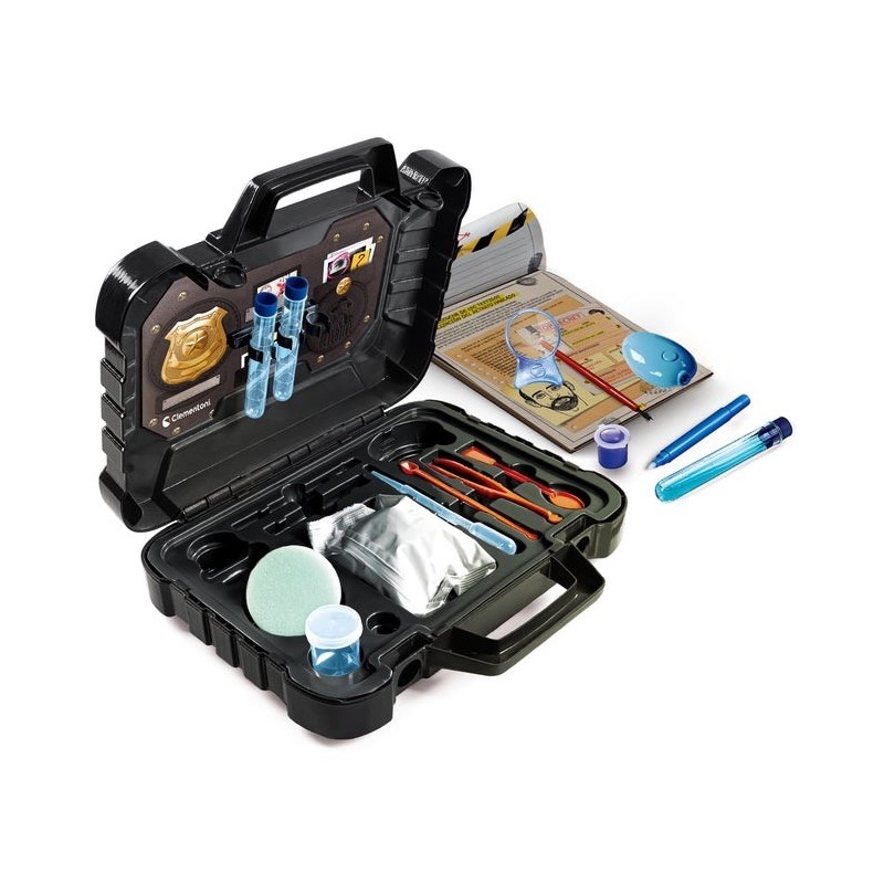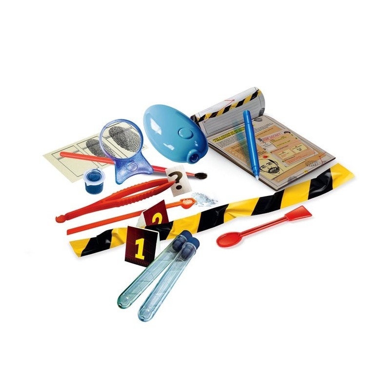 Edad recomendada: +8 años. Tamaño de caja (AxPxA) 32 x 28 x 8.5cm. Un maletín científico de auténtico detective para indagar en las escenas del crimen y descubrir al culpable. Toma huellas dactilares, haz moldes de yeso, cataloga pruebas y sistemas para aislar la escena del crimen y codifica mensajes cifrados. Todo lo necesario para divertirte y jugar a ser un auténtico detective. Un juego que combina el mundo de la ciencia y el del misterio.