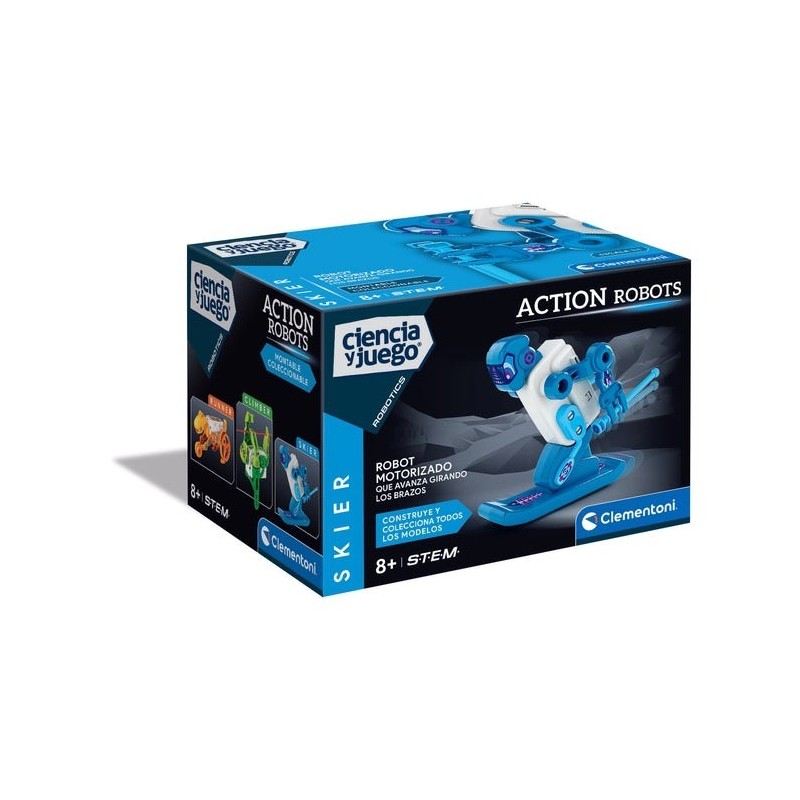 Edad recomendada: +8 años. Tamaño de caja (AxPxA) 15 x 10.5 x 11cm. Un kit para dar tus primeros pasos en la ciencia de la robótica. El kit contiene un módulo electrónico y una serie de componentes para construir un robot capaz de esquiar. La construcción del robot permite estimular la destreza manual y el ingenio. El manual ilustrado ayuda a construir el robot en pocos y sencillos pasos. Diseño moderno y atractivo.