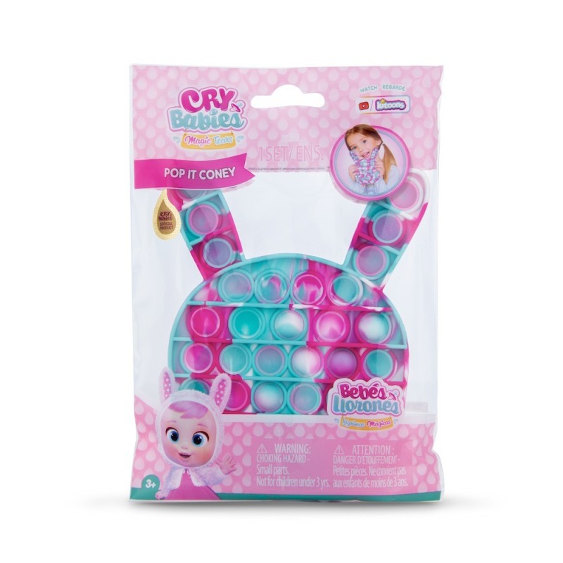 Bebés Llorones Lágrimas Mágicas - Pop It Coney ¡Sigue la tendencia actual del Pop It y descubre un nuevo formato de los Bebés Llorones Lágrimas Mágicas Pop It Coney! Ahora puedes disfrutar jugando y entretenerte con el Pop It personalizado de Coney. También podrás aliviar la ansiedad y relajarte. Llévalo contigo allá donde vayas y pásalo en grande con el nuevo juguete sensorial Pop It Coney de los Bebés Llorones Lágrimas Mágicas! ¡Pásalo en grande y relájate al mismo tiempo! Edad recomendada: +3 años.
