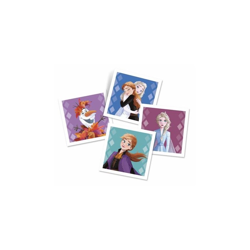 Edad recomendada: +4 años. ¡Este clásico juego de memoria está lleno de coloridos personajes de Frozen! El objetivo de este juego es hacer coincidir las parejas utilizando la memoria visual. Con 48 fichas fuertes de colores para memorizar y combinar, ¡diviértete con los amigos y desafía sus poderes de memoria! El ganador es el jugador que más parejas consiga. Este juego les ayuda a desarrollar habilidades de percepción visual, atención, observación y memoria.