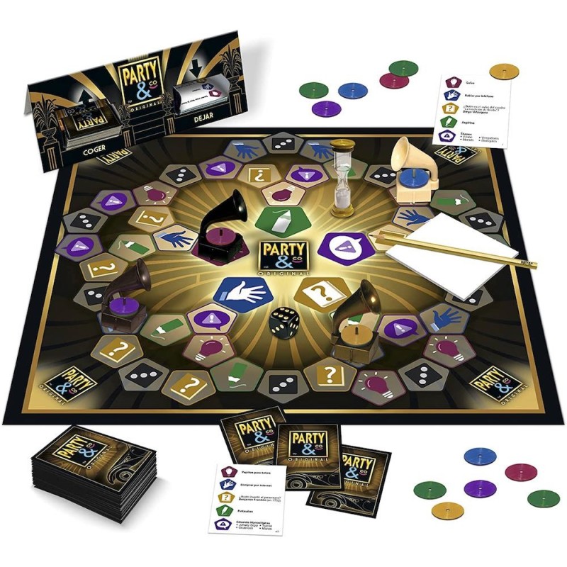 Nueva edición del juego de mesa adulto Party & Co Original para celebrar el 30 aniversario de la marca. Nuevo contenido actualizado con 5 pruebas distintas: PALABRAS PROHÍBIDAS, LA PREGUNTA, A DIBUJAR, MÍMICA Y SONIDOS y UN, DOS, TRES. Por equipos se tiene que intentar superar correctamente una prueba en cada una de las 5 casillas principales para poder puntuar y, a continuación dirigirse a la casilla central para la prueba final. Edad recomendada: +14 años.