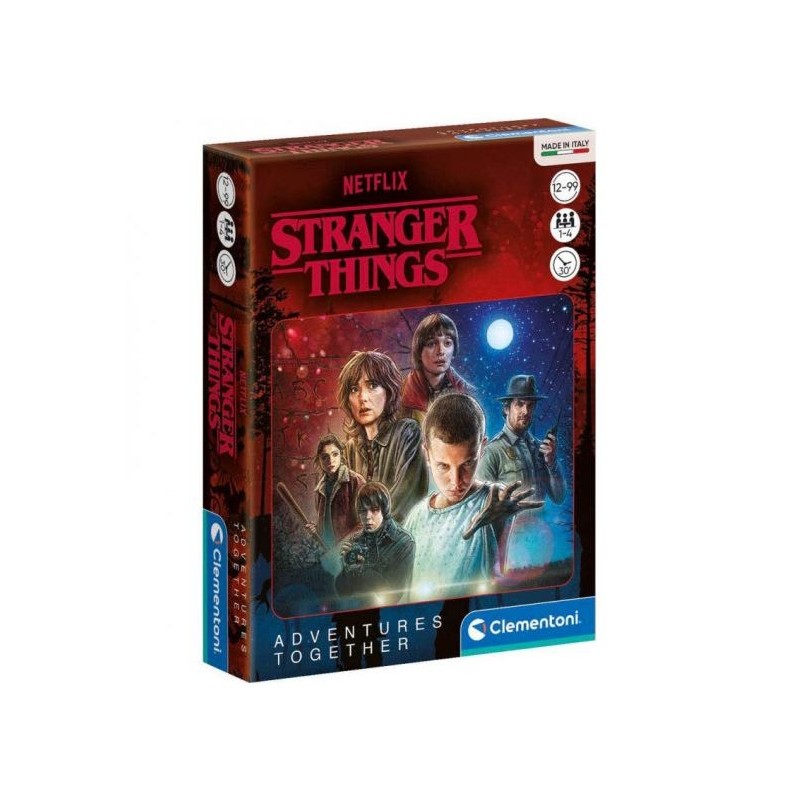 Juego Stranger Things Aventuras compartidas. Un juego de cartas cooperativo de cartas de Stranger Things, para jugar a este juego de mesa toda la familia. Cada jugador, y todos en equipo, serán desafiados para conseguir derrotar el villano de Ud-Side Down. Cada jugador representa a un personaje de la serie, y cada uno tendrá sus propios poderes y méritos; pero todos comparten la misma misión: resolver el misterio detrás del personaje de Eleven y liberar a Hawkins del villano de Up-Side Down. Cada carta representa distintas áreas, tramas, objetos y enemigos. Un juego de mesa de Stranger Things para toda la familia, fabricado en Italia. Edad recomendada: +12 años.