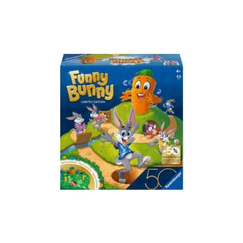 Edad recomendada: +4 años. Funny Bunny: 50 Aniversario es un juego de mesa en el que tendrás que ayudar a los conejitos alcanzar la suculenta zanahoria que se encuentra en la parte superior de la colina. Un juego perfecto para jugar en familia que llega en una edición especial conmemorativa de su 50 aniversario.