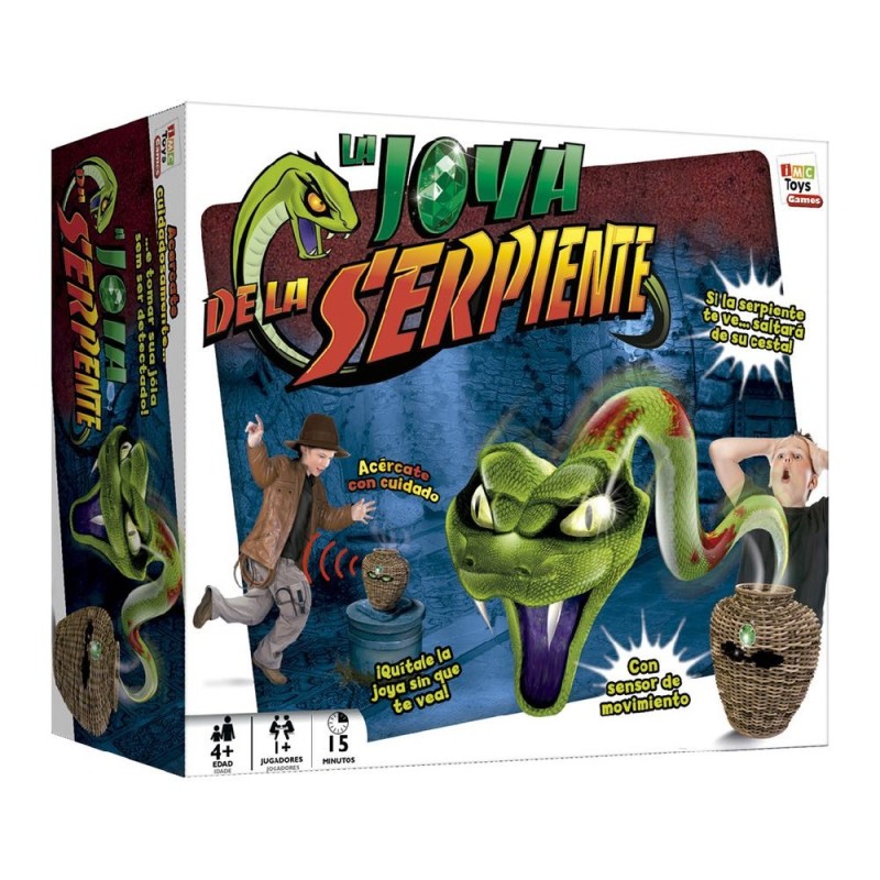 Juego en el que los niños tendrán que intentar llegar a la cesta de la serpiente para robarle la joya, sin que la serpiente los vea. Sus ojos cambian de color para indicar cuándo los jugadores pueden avanzar y cuándo no. Si el jugador se mueve cuando no toca, la serpiente saltará fuera de la cesta hacia él. Edad recomendada: +4 años.
