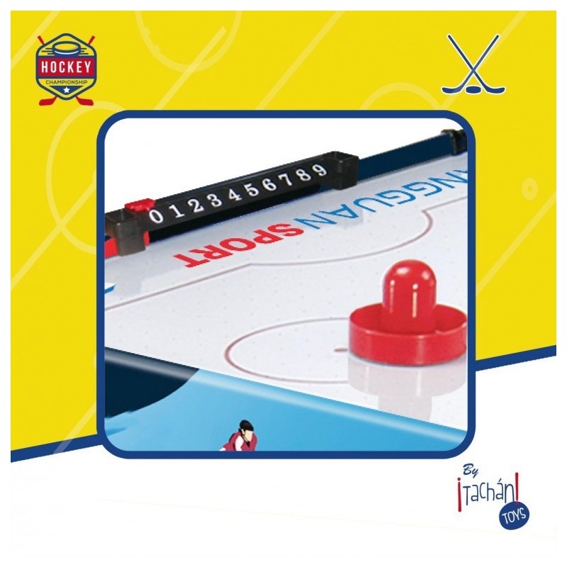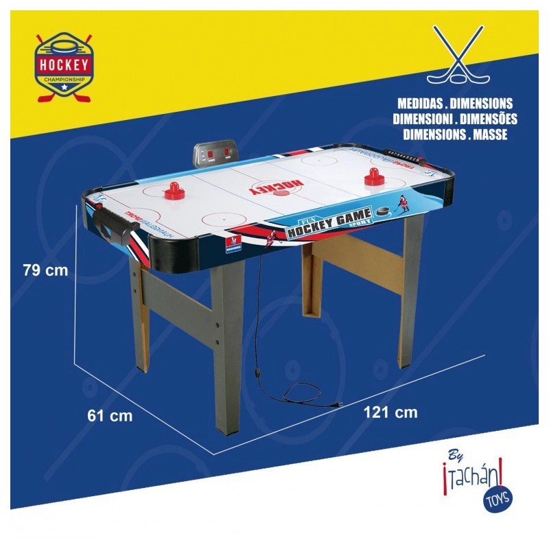 Medidas: 121X81X79 cm. Juego de habilidad basado en el Hockey. Con aire; incluye marcador digital.