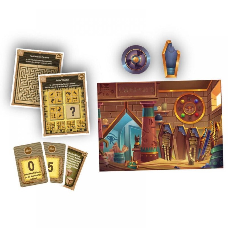 La pirámide del faraón esconde misterios y secretos ancestrales que sólo un verdadero detective puede descubrir resolviendo los acertijos. Un juego con cartas y muchos misterios que resolver para poder salir de la pirámide del faraón. Un entretenimiento único y un viaje en la historia para disfrutar enigma tras enigma, desarrollando la lógica, el pensamiento matemático, la capacidad de observación y el lenguaje. Las cartas esconden pistas útiles para continuar la aventura y salir de la pirámide. El juego incluye una baraja de cartas con enigmas, un tablero de juego y objetos útiles para encontrar las pistas. Edad recomendada: +8 años.
