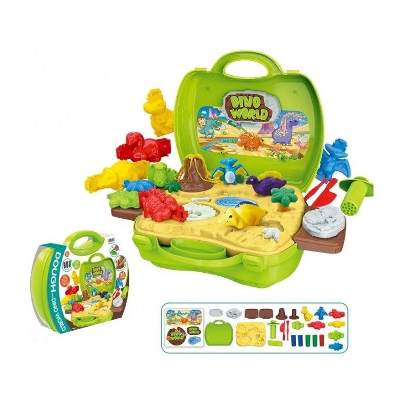 Crea tus dinosaurios de plastilina con este completo maletín con 35 piezas Cuando termines de jugar puedes recogerlo todo fácilmente y llevarlo a donde quieras Dimensiones: 24 x 22 x 10 cm Edad recomendada: a partir de 3 años