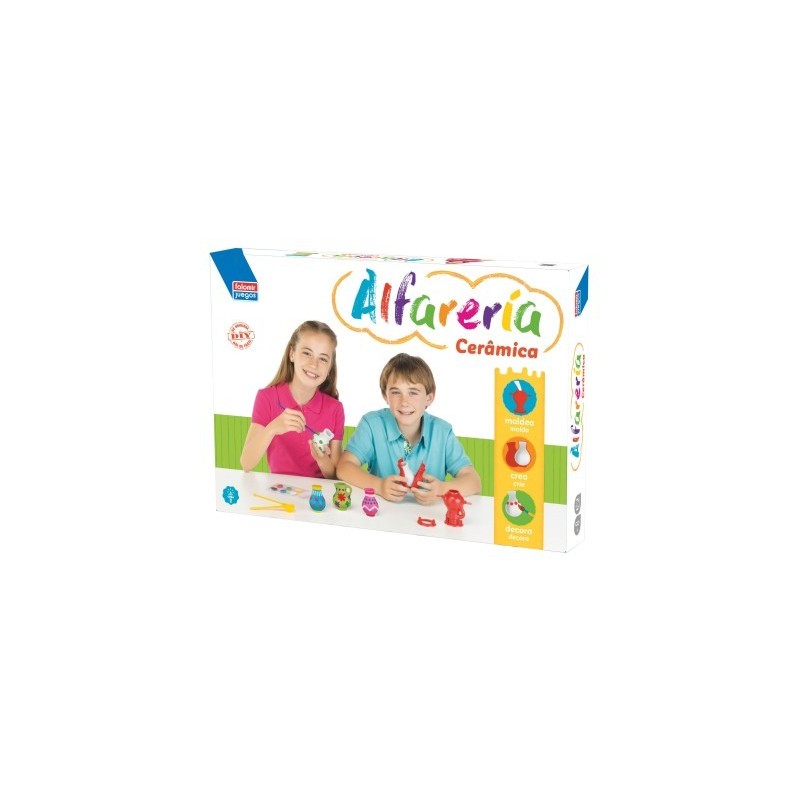 Deja volar tu imaginación y conviértete en un artista. Con ALFARERÍA, podrás decorar como quieras las piezas que hayas creado antes con escayola. En este juego dispones de moldes para realizar jarras y vasijas, así como de acuarelas para decorarlas y de la escayola necesaria. Edad recomendada: +8 años.