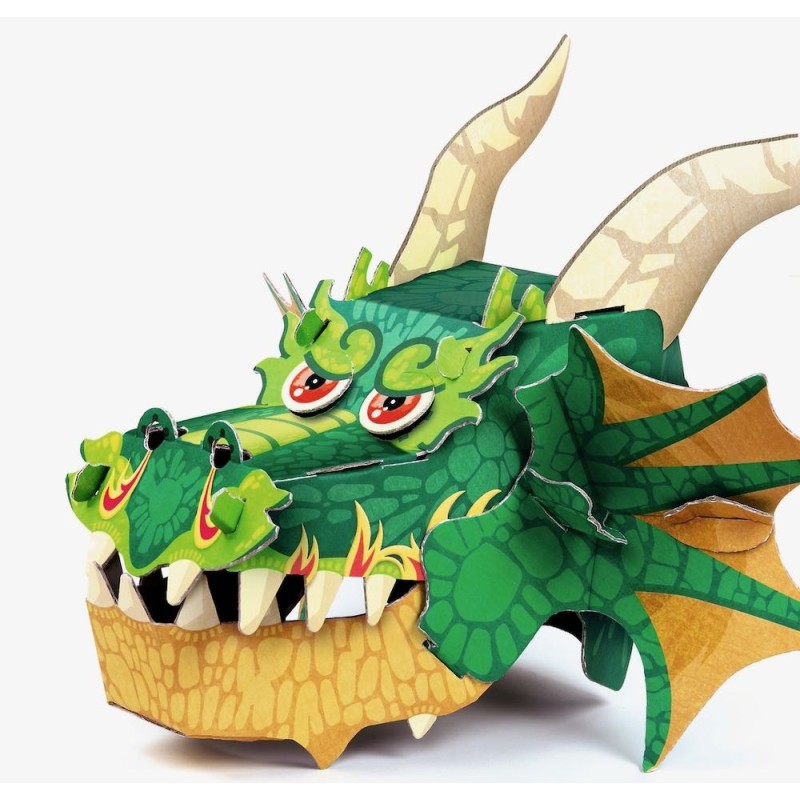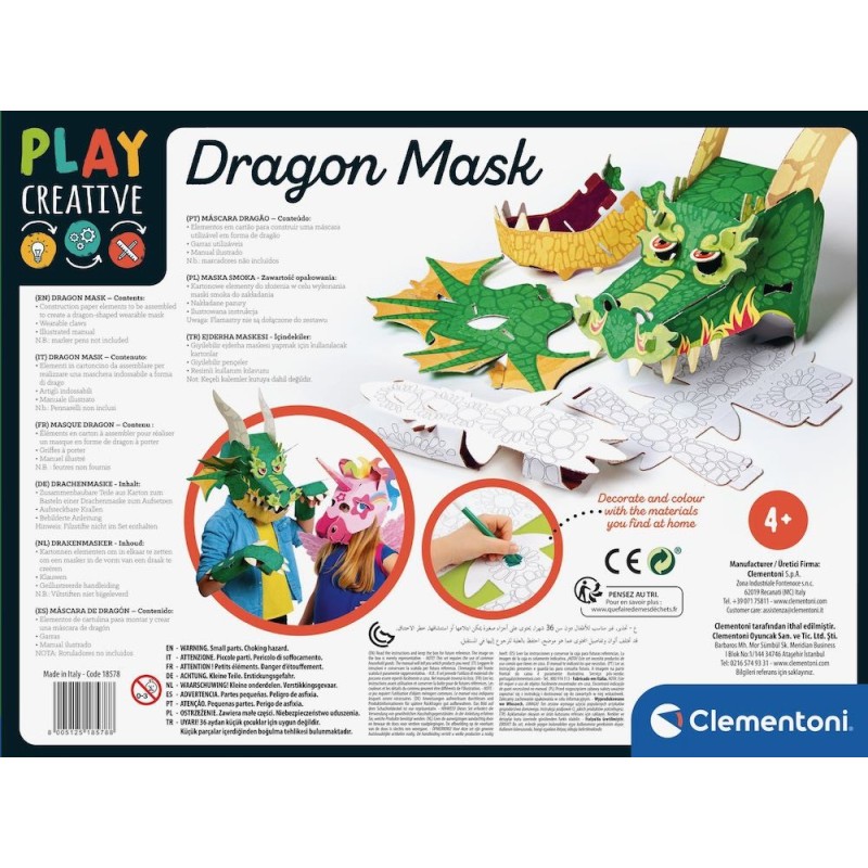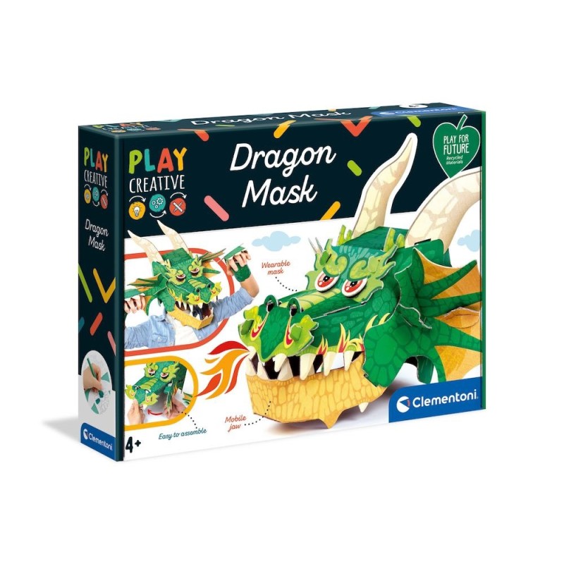 BIG MASK - DRAGON, Máscara de Dragón. ¡Un kit supercreativo hecho de papel reciclado para montar y crear una increíble máscara de dragón tridimensional que podrás usar! El kit también contiene las garras del dragón que se pueden colorear, ensamblar y ¡luego usar! Estimula las habilidades manuales, la creatividad, la imaginación y la capacidad de contar historias. Edad recomendada: +4 años.