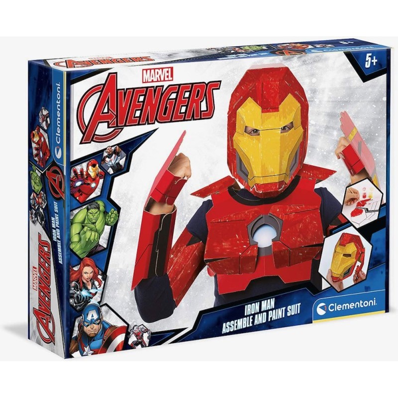 ¡Iron Man ha vuelto y cobra vida en un divertido juego para superhéroes de verdad! El kit contiene un montón de accesorios de cartón que puedes montar para recrear la máscara de Iron Man y divertirte personificando a uno de los superhéroes más queridos por jóvenes y mayores. Un juego que desarrolla la creatividad, la destreza y el juego imitativo. Edad recomendada: +5 años.