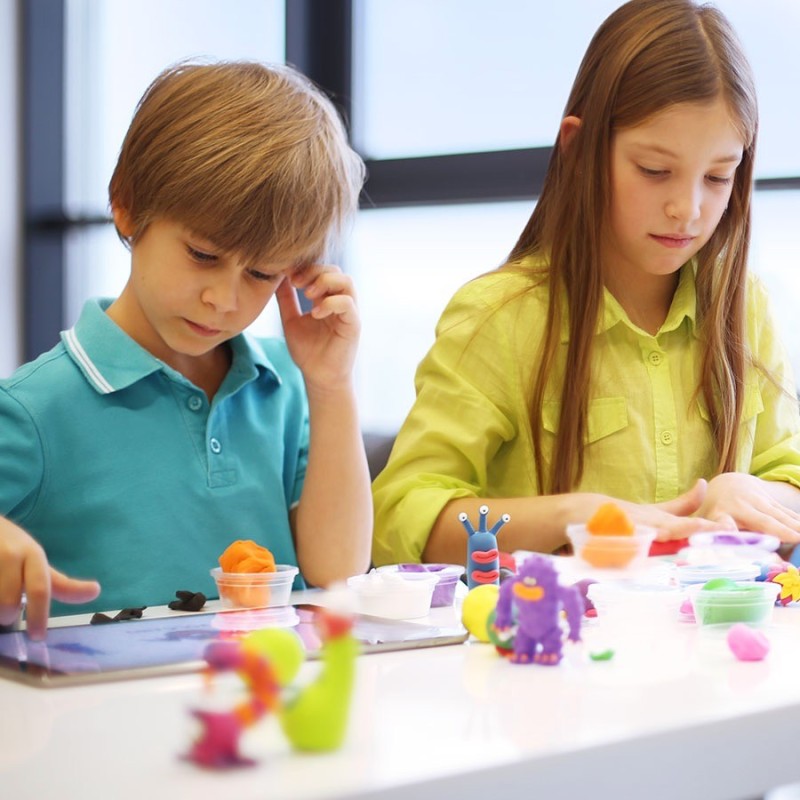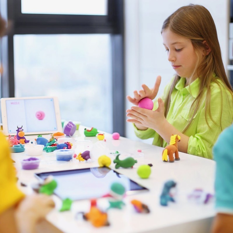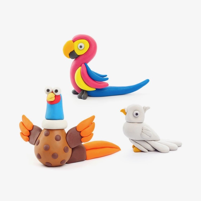 Edad recomendada. +3 años. El pack mediano permite a los niños crear 3 figuras diferentes de la temática que elijan. Hay 4 temáticas: pájaros, aves de granja, insectos o aliens. En cada pack hay 6 botes con hasta 9 colores.