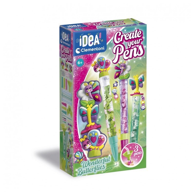 Edad recomendada: +6 años. Un original kit creativo que permite montar 3 bolígrafos y personalizarlos con diferentes decoraciones, eligiendo entre 3 temas diferentes. Un kit práctico y completo compuesto por: 3 bolígrafos, 4 tintas de colores diferentes, 3 personajes y todas las herramientas para crearlos. Un concepto que va más allá de la simple actividad de personalizar un bolígrafo y permite crear dando rienda suelta a la imaginación.