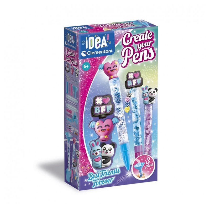 Edad recomendada: +6 años. Un original kit creativo que permite montar 3 bolígrafos y personalizarlos con diferentes decoraciones, eligiendo entre 3 temas diferentes. Un kit práctico y completo compuesto por: 3 bolígrafos, 4 tintas de colores diferentes, 3 personajes y todas las herramientas para crearlos. Un concepto que va más allá de la simple actividad de personalizar un bolígrafo y permite crear dando rienda suelta a la imaginación.