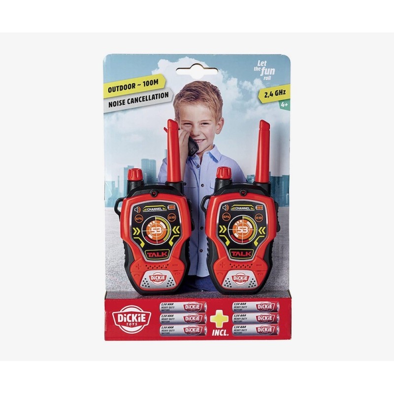 Edad recomendada: +4 años. Los walkie-talkies perfectos para los niños. Con un diseño intuitivo, un volumen adecuado para los niños, una carcasa resistente y un compartimento de pilas sellado, estos walkie-talkies son un gran juguete para los niños. En colores negro y rojo, los walkie-talkies cuentan con un diseño ergonómico adaptado específicamente a las manos de los más pequeños garantizan horas de diversión llena de acción. Información técnica: walkie-talkies de 2,4 GHz con un alcance de hasta 100 metros en espacios abiertos, volumen y potencia de transmisión adecuados para los niños, tecnología de cancelación de ruido, incluye 2 x 3 pilas AAA.
