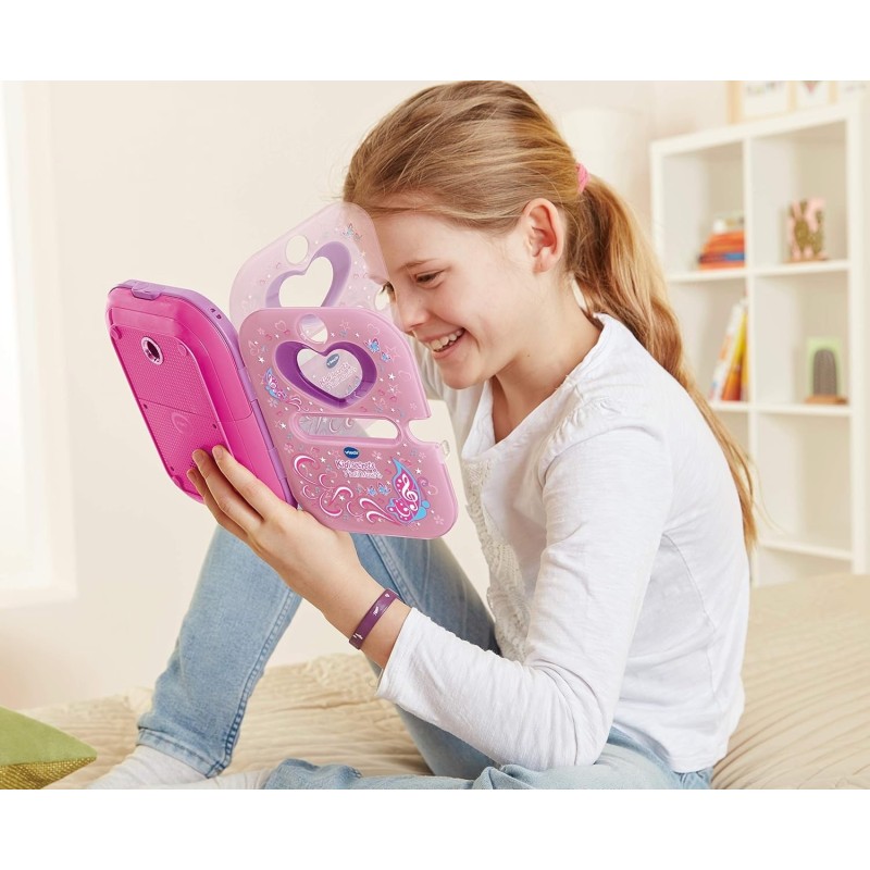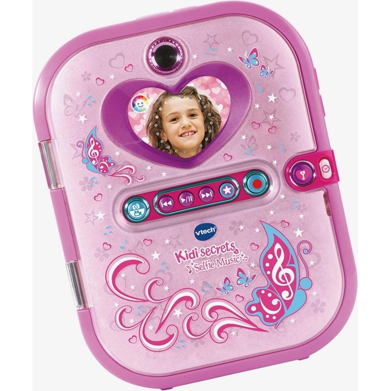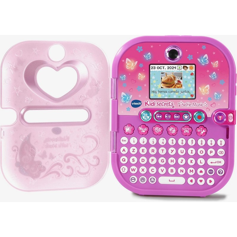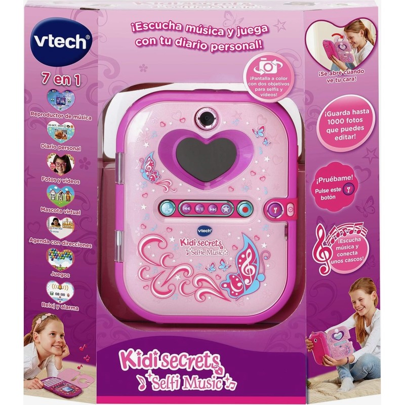 Edad recomendada: +5 años. ¡Escucha música, juega y guarda tus secretos! Diario electrónico para niños. Protege tus secretos y recuerdos de ojos curiosos mientras te lo pasas en grande con su espectáculo de luces. Tu diario se desbloqueará tan pronto como identifique tu cara. Gracias a sus cámaras frontal y trasera podrás hacerte fotos, selfis y vídeos. Además cuenta con reproductor musical, cuatro luces multicolor, pantalla a color, reloj con alarma, tarjetas y mucho más. Sus 20 actividades diferentes incluyen una mascota virtual de unicornio, una app de estilismo y juegos para poner a prueba tu lógica, ingenio, mates y ¡mucho más! - Incorpora un teclado para escribir todos tus secretos, lector MP3, pantalla a color y cámara con doble objetivo. - Efectos de luz mágicos sincronizados con la música en su tapa. - Incluye función de reloj y despertador. - Nuevo diseño y contenido 100% renovado: más de 20 nuevos juegos y actividades. - Reproductor musical: añade tu propia música insertando una tarjeta microSD (no incluida) o escucha las canciones del diario. - Diario de voz e imágenes: crea y personaliza más de 750 entradas de diario con clips de fotos y voz. - Probador de moda: vístete a la última o crea tus propios diseños sin esfuerzo. - Mis juegos y actividades: incluye 10 juegos para mejorar lenguaje, mates, lógica y ¡mucho más! - Reconocimiento facial: el diario se desbloquea y su portada se abre con tu cara. - Mi unicornio: juega, cuida y retrata a tu mascota virtual. ¡Lo pasarás en grande! - Sala de arte: crea tarjetas o decora tus fotos y vídeos con marcos y efectos. - Mis herramientas: incluye alarma, reloj, fondos personalizables y mucho más. VTech se preocupa por nuestro planeta: El embalaje de este juguete está compuesto en un 90% de cartón reciclable.