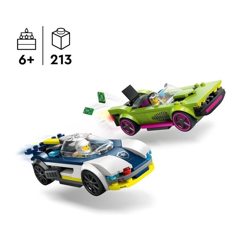 Desata la adrenalina con este coche de policía para peques de 6 años o más. El set LEGO® City Coche de Policía y Potente Deportivo (60415) para niños y niñas viene con un espectacular interceptador policial y un vehículo de fuga, más las minifiguras de un agente y una ladrona. Este set incluye una guía de construcción en imágenes fácil de seguir, así como instrucciones digitales paso a paso disponibles en la app LEGO Builder. Invita a tu peque a vivir una divertida aventura con esta intuitiva compañera. En ella podrá visualizar modelos en 3D a medida que construye. La app también permite seguir el proceso, explorar sets virtuales y guardarlos.