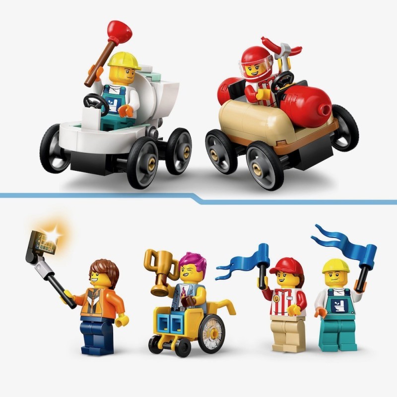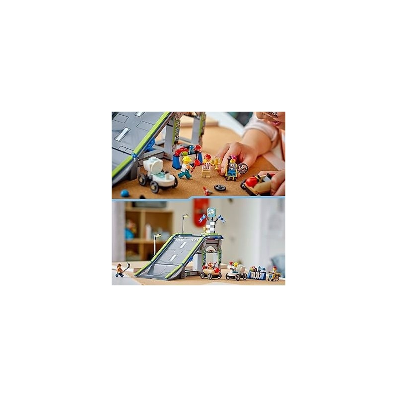 ¡Los juegos de los peques toman impulso con el set LEGO® City Sin Límites: Rampa de Aceleración para Coches de Carreras (60460)! Este dinámico juguete para niños y niñas a partir de 6 años incluye una altísima rampa y 2 extravagantes vehículos de carreras. Tu peque coloca los coches con forma de perrito caliente e inodoro en lo alto de la rampa y acciona una palanca para lanzarlos a gran velocidad desde la línea de salida. Con sus 4 minifiguras (entre ellas una vendedora de perritos calientes yun fontanero), este set fomenta el juego imaginativo. Este kit LEGO trae una guía de construcción impresa y, además, los niños cuentan con la app LEGO Builder, donde podrán acercar y girar los modelos en 3D, consultar su progreso y guardar juegos. Los sets LEGO City contienen atractivos vehículos, estructuras realistas y divertidos personajes para jugar sin límites. Tu peque puede combinar este set con otros de la gama LEGO City (a la venta por separado) para ampliar las posibilidades de juego.