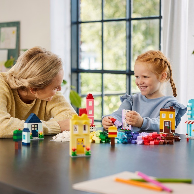 Inspira a tu joven constructor o constructora con el set LEGO® Classic Casas Creativas (11035). Este set de construcción de casas LEGO permite crear, combinar y personalizar 6 coloridas casas con ventanas, puertas y accesorios. Además, ayuda a los niños y las niñas a partir de 4 años a adquirir confianza en su capacidad creativa, mejora su concentración y desarrolla sus habilidades de resolución de problemas. Los peques siguen sencillas instrucciones para construir 6 modelos con alturas y formas diferentes. ¡Y la diversión creativa continúa! Luego pueden agregar ladrillos para aumentar la altura de las casas y cambiar sus puertas, ventanas, tejados y jardines. Las 8 ideas incluidas dan alas a la construcción creativa y, como extra, los niños pueden construir una casa LEGO gigante con los ladrillos y piezas del kit. Las instrucciones también están disponibles en la app LEGO Builder.