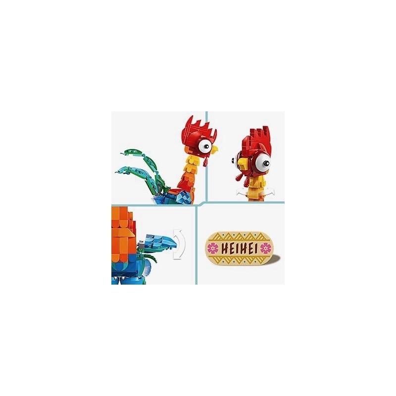 Sumérgete en la magia de las películas Disney Vaiana y Vaiana 2 con el kit de construcción LEGO® | Disney Vaiana 2 Heihei (43272). Este cautivador juguete está diseñado para fans de los animales, entusiastas del cine y niños a partir de 9 años, que disfrutarán seguro creando una detallada réplica construible del simpático gallo. Cuenta con cabeza que gira, y alas y cola móviles. Además, la figura se puede colocar de pie o exponer sobre una base con flores decorativas y una placa de identificación. Este set de construcción Disney para niñas, niños y fans es un genial juguete construible del que todos hablarán y ofrece a los niños más mayores y a los fans adultos un modelo más complejo de construir. Ideal para regalar, queda genial como objeto decorativo y funciona con otros sets de construcción LEGO | Disney de la gama (a la venta por separado). Los constructores reciben también acceso a una intuitiva experiencia de construcción en 3D con la app LEGO Builder.