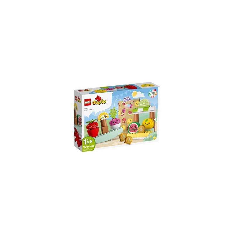 Inicia a tu bebé en el juego de hacer la compra con el juguete Mi Primer LEGO® DUPLO® Mercado Orgánico (10983). Este simpático mercado de agricultores le permitirá recrear situaciones cotidianas, como pesar los artículos en la balanza, pagar con monedas de juguete de distinto valor y llevar los alimentos a casa en una monísima bolsa de tela. Edad recomendada: +18 meses.