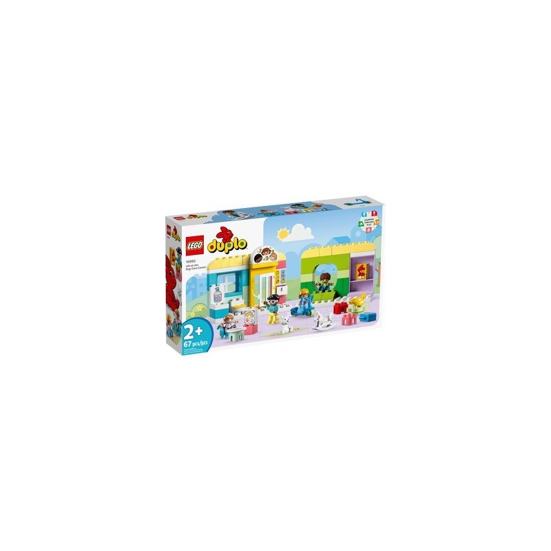 Los bebés a partir de 2 años se divierten en compañía de amigos con el set Mi Ciudad LEGO® DUPLO® Vida en la Guardería (10992). Con este juego de juguetes educativos, se habitúan a las rutinas diarias y también aprenden los números y los colores. Rebosante de juego realista El set propone infinidad de actividades creativas que permiten a papás y bebés representar situaciones de juego social, como en una guardería de verdad. Los peques pueden pintar un cuadro con los dedos o tomar un tentempié. Quien vaya en la silla de ruedas puede usar la rampa para unirse a los demás, que juegan en el patio con el patinete. Los papás pueden enseñar la importancia de lavarse las manos en el baño, donde hay un inodoro y un lavabo.