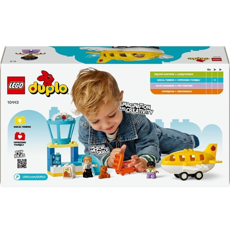 Ayuda a ganar confianza ante nuevas experiencias con el juguete de construcción Primera Vez en el Aeropuerto (10443). Este regalo para preescolares les invita a imaginar que preparan la maleta y luego la facturan. Este set LEGO® DUPLO® cuenta con montones de características para practicar el juego imaginativo. Incluye un mostrador de seguridad donde los bebés pueden “escanear” la maleta y empujarla por el conducto, una torre de control y un avión móvil en el que caben las figuras del osito de peluche, el niño y la piloto. Este set está lleno de actividades de aprendizaje. La rueda de emociones incluida permite expresar la sensación que produce ir a un aeropuerto o viajar en avión. Los bebés trabajan su motricidad fina preparando la maleta y embarcando a las figuras. Este juguete para el desarrollo del pensamiento lógico hará que usen su creatividad en cada paso de su viaje hacia convertirse en los héroes cotidianos de su aventura LEGO DUPLO. Contiene 23 piezas.