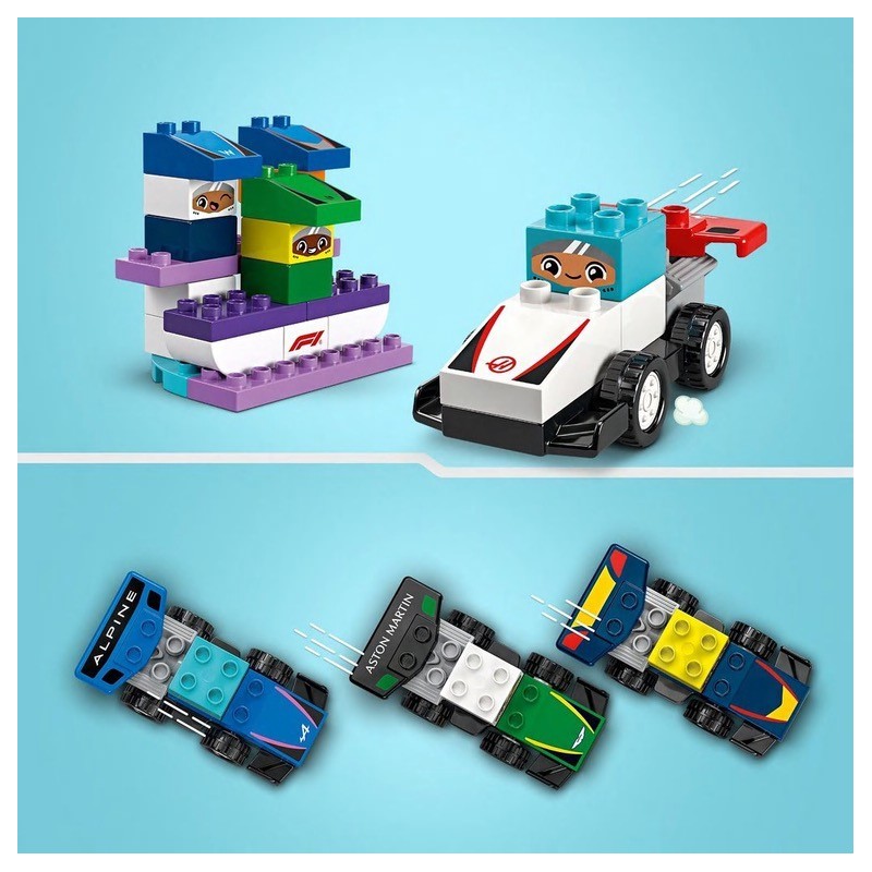 Arranca motores y prepárate para correr con el juguete de construcción Coches de Carreras y Pilotos del Equipo de F1® (10445). Esta divertida actividad familiar permite a los fans y su mecánico júnior recrear las emociones de la Formula 1®. Este imaginativo juguete para bebés rebosa elementos de iniciación al juego que darán paso a la diversión. Juntos, construiréis reconocibles elementos de la F1, como el semáforo de salida y el podio. Los 10 equipos están representados, de modo que los bebés podrán personalizar sus coches y elegir quién gana la carrera y el trofeo. El regalo ideal para preescolares amantes de los vehículos, este juguete de aprendizaje ayuda a los bebés a desarrollar su percepción espacial y a practicar sus habilidades motrices finas usando la función de elevación de la grúa de juguete para una rápida parada en boxes. Aprenderán a clasificar emparejando a los equipos con sus colores, ¡y a perseverar compitiendo contra sus familiares hasta cruzar la meta los primeros!