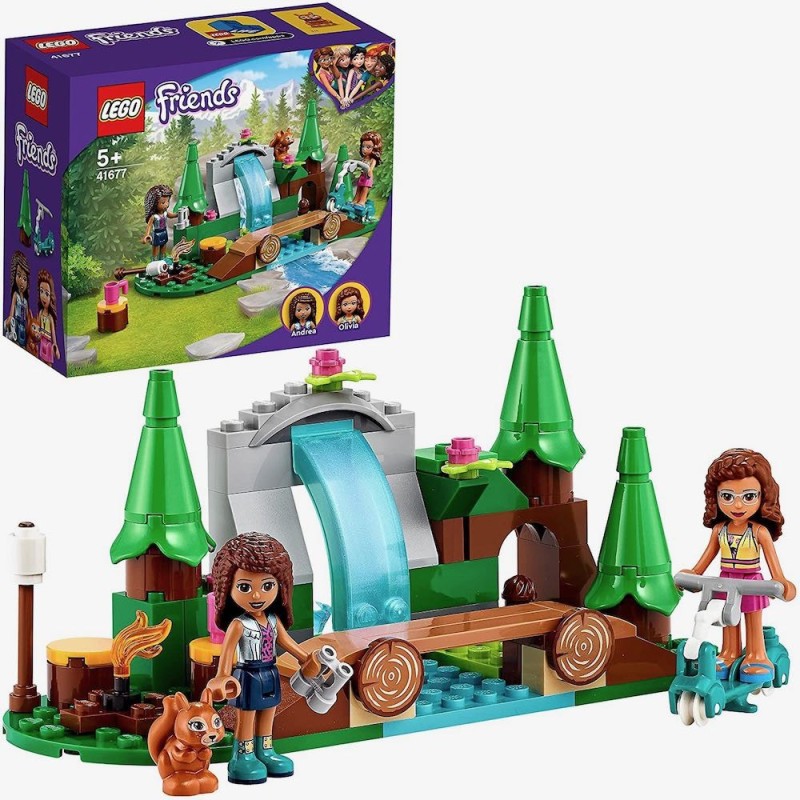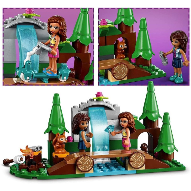 Deja que tu pequeña amante de la naturaleza disfrute en casa de su pasión por las actividades al aire libre con el juego LEGO® Friends Bosque: Cascada (41677), con el que podrá imaginar que explora el bosque con sus amigas. Aventuras por todas partes Este bosque de juguete, que cuenta con una preciosa cascada, incluye personajes (LEGO Friends Andrea y Olivia) y fantásticos accesorios (como una nube de azúcar en un palito y una hoguera) para pasarlo genial jugando a interpretar y contar historias inventadas. A las niñas les encantará hacer de exploradoras y descubrir la gema oculta detrás de la cascada de juguete abisagrada. De tamaño reducido, este juego puede dejarse expuesto, listo para jugar en la naturaleza en cualquier momento. Un mundo repleto de amigos Los juguetes LEGO Friends están llenos de detalles realistas que estimulan la imaginación y de simpáticos animales que enamorarán a tu joven constructora. ¡Ayúdala a conocer los populares juguetes ambientados en HeartlakeCity! Edad recomendada: +5 años.
