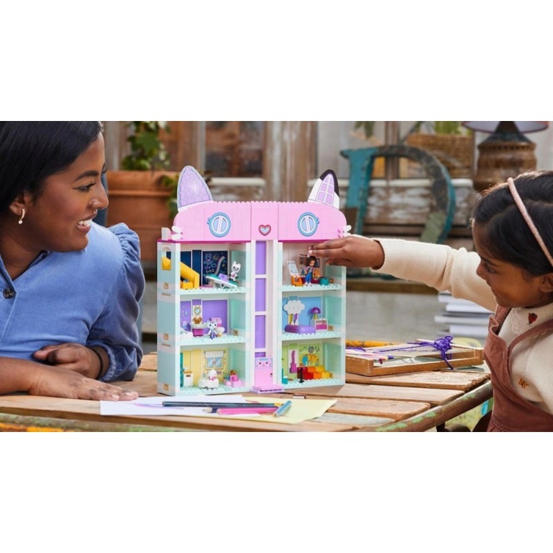 ¡El set LEGO® La Casa de Muñecas de Gabby (10788) está lleno de diversión y actividades para niños y niñas a partir de 4 años! Regala a tu fan de la serie para televisión de DreamWorks Animation su propia casita de 8 habitaciones. Explóralo todo La Casa de Muñecas de Gabby tiene 8 habitaciones conectadas por un ascensor. En cada una hay infinidad de actividades. Por ejemplo, los peques pueden hornear en la cocina, deslizarse por el tobogán en la sala de juegos, sacar su lado creativo en la sala de manualidades, tocar el piano en la sala de música, acicalarse en el baño, echarse la siesta en el dormitorio o dar una fiesta en la azotea y estrenar la pista de baile. Compartirán sus aventuras con 4 populares personajes: Gabby, Pandy Patitas, Muffin y Siregata. La caja contiene una guía de construcción con historia visual y la app LEGO Builder cuenta con herramientas de acercamiento y giro. El gran ladrillo para principiantes garantiza que la construcción y la diversión empiecen enseguida.