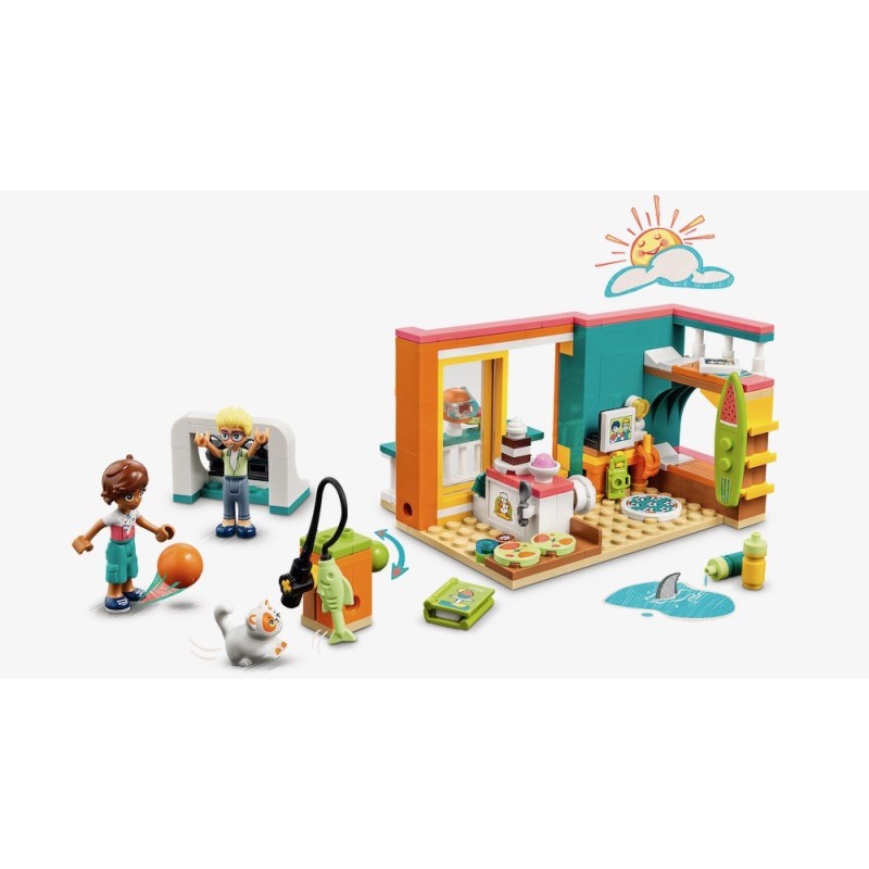 Tanto si les encanta hornear como si lo suyo es el juego creativo, a los niños de 6 años o más les apasionará descubrir todo lo que contiene el set LEGO® Friends Habitación de Leo (41754). Leo se ha hecho un estudio en su dormitorio para grabar los contenidos que publica en su canal de repostería. Los peques se lo pasarán genial uniéndose a las creativas actividades de Leo y Olly. Filmar y editar vídeos no tiene secretos para Olly, así que es el amigo perfecto para ayudar a Leo. El set incluye un montón de accesorios para jugar a interpretar, como un juguete para gatos, un libro de cocina y una cámara. Cuando acaben de grabar, los niños pueden abrirles las puertas de la terraza a los amigos para que contemplen el mar desde la habitación, decorada con motivos playeros.