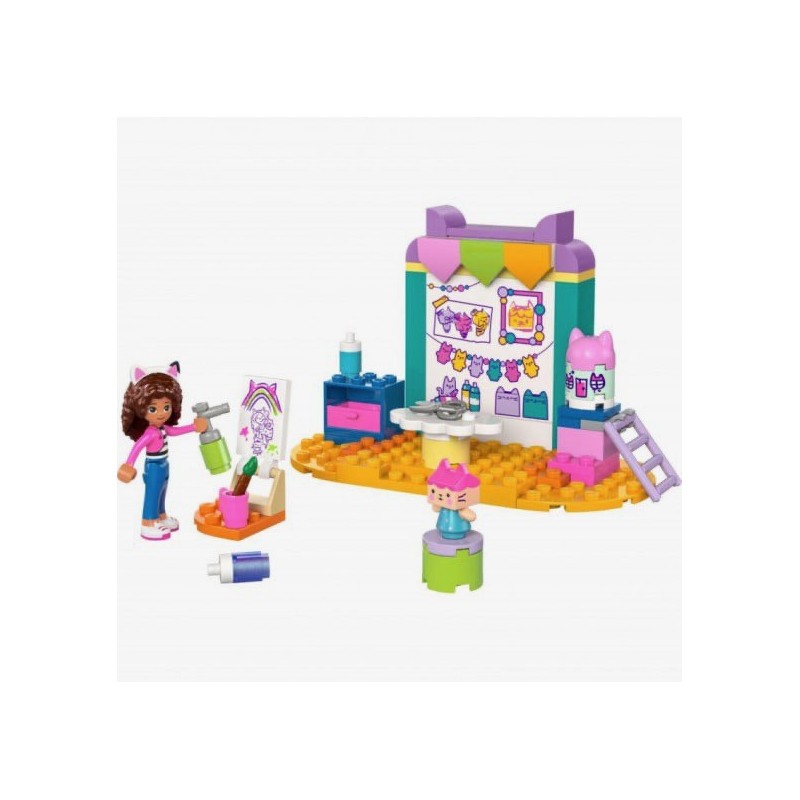 Edad recomendada: +4 años. El set LEGO® 4+ La casa de muñecas de Gabby Creaciones con Bebé Box (10795) es un juguete para niños y niñas de 4 años o más orientado al juego simbólico y diseñado para desarrollar la creatividad y fomentar el juego imaginativo. Este modelo está lleno de brillantes colores, conocidos personajes y divertidas características que reconocerán y adorarán los fans de La casa de muñecas de Gabby, de DreamWorks Animation. Este juguete LEGO es también un juego de manualidades. Incluye un pincel, pintura, tijeras y aerosol, además de un minipersonaje de Gabby y una figura de Bebé Box. Juntos, Gabby y Bebé Box pintan un cuadro y construyen una maqueta de la casa de muñecas de ella. Hay una escalera para ayudar a los personajes a llegar a la parte superior de la maqueta. Tiene una pared cubierta de obras de arte y asoman orejas de gato por arriba. El set, con detalles para estimular el juego creativo, cuenta con un ladrillo para principiantes e instrucciones en forma de colorida historia visual.