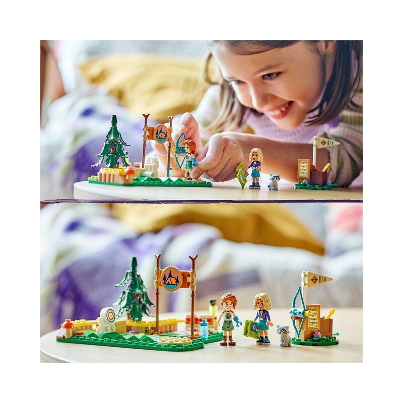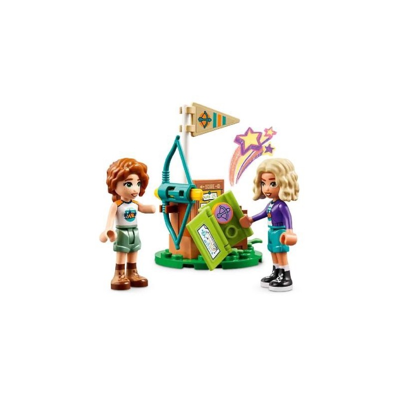 El juguete de construcción LEGO® Friends Campamento de Aventura: Área de Tiro con Arco (42622) para mayores de 6 años incluye minipersonajes de Autumn y Nova, un mapache y equipo deportivo. Las niñas y los niños pueden realizar prácticas de tiro de verdad con el arco de este emocionante set, que dispara las flechas y todo. ¡La diana cae cuando la flecha da en el blanco! Hay una escala de dificultad codificada por color para que los peques alejen la diana si desean complicar el desafío. Los jóvenes aventureros pueden crear infinitas historias con este set de tiro con arco. Autumn tiene 2 caras diferentes para cambiarle la expresión cuando apunta. Nova recibe la insignia “Tiro con Arco” para su libro de actividades. Después, Autumn y Nova se relajan tomando un sándwich, ¡pero un travieso mapache también quiere un mordisquito!