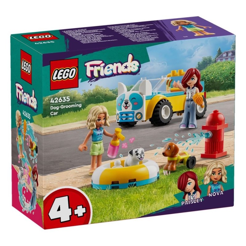 El juguete LEGO® Friends Peluquería Canina Móvil (42635) es una fantástica idea de regalo para peques a partir de 4 años que disfrutan jugando a cuidar de animales. Las niñas y los niños practican el juego imaginativo durante horas con los 2 minipersonajes, las 2 figuras de perros, un coche construible, una piscina y accesorios de aseo para mascotas. Los pequeños amantes de los animales se lo pasarán genial ayudando a Paisley y Nova a lavar y peinar a Pickle y Juno. Les encantará bañar a los 2cachorros en la piscina. Usarán el champú y los cepillos para dejarlos como un sol. ¡A Pickle le hace gracia tener pompas en la nariz! Cuando estén limpios, pueden volver a cargar los accesorios en el coche y conducir hasta la casa del próximo cliente. Los sets de juguetes LEGO 4+ están diseñados para proporcionar a los niños una experiencia de construcción ágil y divertida. Vienen con un ladrillo para principiantes y con la app LEGO Builder: su guía en una intuitiva aventura de construcción.