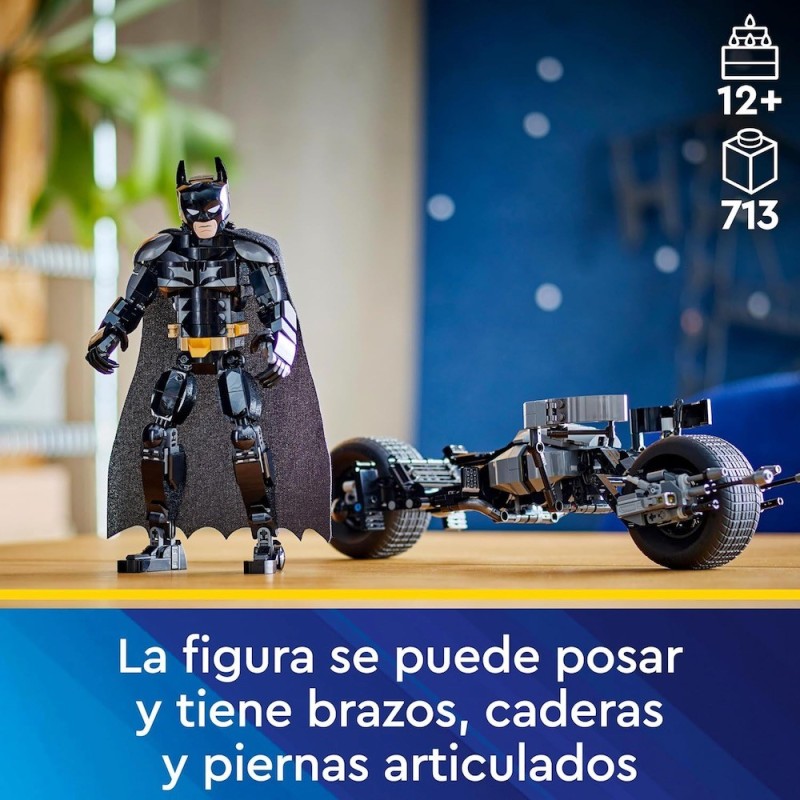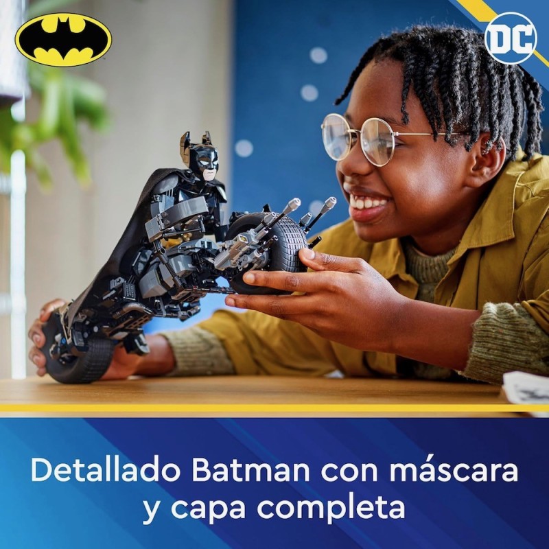 El set LEGO® DC Batman™ Figura para Construir: Batman y Moto Bat-Pod (76273), basado en la película El caballero oscuro, reúne los componentes ideales para cualquier fan del emblemático superhéroe a partir de 12 años. Totalmente articulado y con una altura aproximada de 26 cm, este juguete con detalles de gran fidelidad es tan fantástico como deseable para tu colección. Las articulaciones móviles del juguete en hombros, brazos, caderas y piernas permiten a los peques colocarlo en posturas geniales y crear aventuras dinámicas, ¡por eso esta figura del superhéroe es perfecta para construir, jugar y exponer! La detallada figura de acción de Batman viene con su moto Bat-Pod ultramoderna, equipada con 2 lanzadores. Para disfrutar también de diversión digital, los constructores y las constructoras pueden acercar y girar versiones 3D de sus sets y seguir sus progresos en la intuitiva app LEGO Builder.