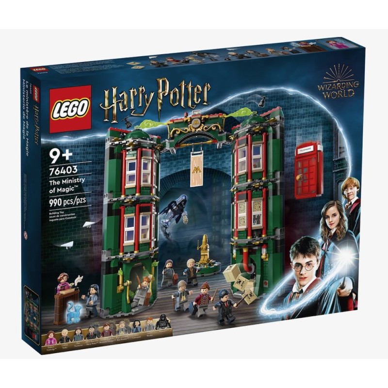 Sorprende a tu fan de Harry Potter™ de 9 años o más con el set LEGO® Harry Potter Ministerio de Magia (76403), el primer modelo LEGO que reproduce el mágico cuartel general con un grado de detalle tan realista. Famosas escenas e icónicos personajes El set de varias plantas captura en toda su amplitud las actividades del Ministerio de Magia. Incluye a Harry Potter, Hermione Granger™ y Ron Weasley™, que, con un giro de cabeza y una nueva peluca, se transforman por arte de magia en Albert Runcorn, Mafalda Hopkirk y Reg Cattermole. Hay diversos espacios interiores para explorar: el despacho de Dolores Umbridge, el de Arthur Weasley, la Sala de las Profecías y el Tribunal. ¡Los niños deben encontrar el guardapelo de Slytherin™ y escapar sin que los atrapen Yaxley, Pius y el Dementor™! La app gratuita Instrucciones de Montaje LEGO permite a los peques acercar y girar mientras construyen, y, gracias a su diseño modular, el Ministerio se puede reconfigurar para vivir nuevas aventuras. Edad recomendada: +9 años.
