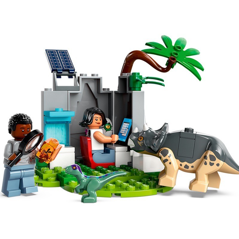 Los jóvenes fans de 4 años o más podrán cuidar de crías de dinosaurio y jugar con ellas mientras aprenden a construir con el set LEGO® Jurassic World Centro de Rescate de Crías de Dinosaurio (76963). Incluye un vehículo todoterreno y un área de investigación con la pared de una cueva, ambos con ladrillos para principiantes que facilitan la construcción, y también un comedero. Las 2 minifiguras, las figuras de las crías de Ankylosaurus, Triceratops y Velocirraptor, y las figuras de juguete de unVelocirraptor pequeño y un Pteranodon adulto pondrán en marcha el juego enseguida. Estos dinosaurios de juguete LEGO vienen con instrucciones visuales para niños y niñas que estén aprendiendo a leer. Además, la app LEGO Builder y sus intuitivas herramientas de acercamiento y giro les ayudan a ver su modelo mientras construyen.