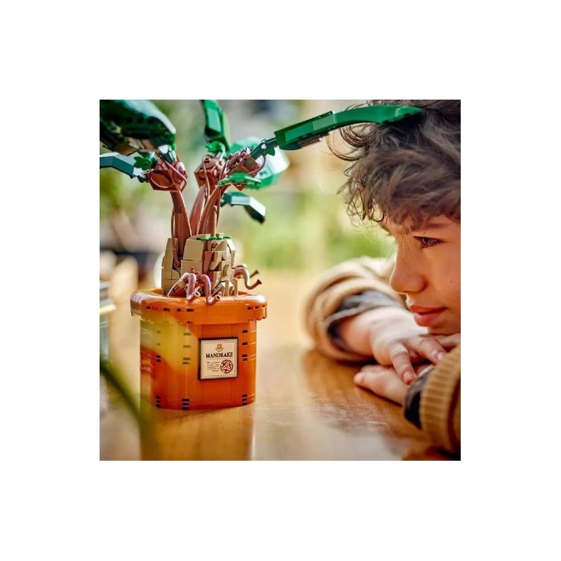 Edad recomendada: +10 años. Rodea a tu peque de la magia y el asombro de una clase de Herbología de Hogwarts™ con el juguete LEGO® Harry Potter™ Mandrágora (76433), la primera figura LEGO de esta planta de llanto letal. Una mágica y decorativa idea de regalo para niñas, niños y fans imaginativos de Harry Potter a partir de 10 años, el set incluye un modelo de juguete articulado casi de tamaño natural de una mandrágora, así como una maceta para crear una simpática pieza de exposición. Coloca las hojas de tu Mandrágora comomás te guste, sácala de la maceta y muévele el torso arriba y abajo para animar la boca y las extremidades, como si estuviera llorando.