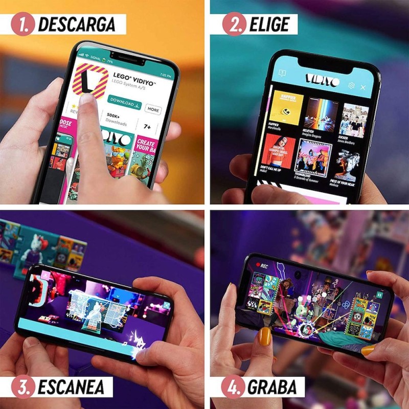 Abre las puertas del mundo de la creación de vídeos musicales a los niños que adoran bailar y actuar con el set LEGO® VIDIYO™ Unicorn DJ BeatBox (43106). Descarga la app gratuita, escanea la minifigura y descubre la arrolladora personalidad del Unicorn DJ sobre el escenario. Después, escanea los BeatBits para desbloquear efectos especiales, desafíos y más. Tu peque podrá producir exclusivos vídeos musicales y compartirlos con otros creadores en una fuente social segura para ellos. Diversión portátil La BeatBox se cierra y dentro caben la minifigura y los BeatBits. A los niños les encantará decorarla con las piezas LEGO. Podrán elegir entre un unicornio, una mesa de DJ o nubes iridiscentes, o crear su diseño. Experiencias musicales Los sets LEGO VIDIYO ofrecen una experiencia de juego social segura y ayudan a los peques a convertirse en directores, productores y estrellas de creativos vídeos llenos de mezclas musicales, divertidos personajes, canciones, coreografías y efectos geniales. Edad recomendada: +7 años.