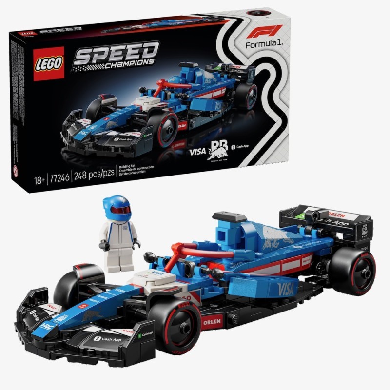 Explora tu pasión por las carreras de Fórmula 1 con el kit para adultos LEGO® Speed Champions Coche de Carreras Visa Cash App RB VCARB 01 F1® (77246). Esta maqueta de un coche de F1 reproduce detalles de diseño de la versión de la vida real que compitió en la temporada 2024 del Campeonato Mundial de Fórmula 1. La maqueta del coche de F1 cuenta con habitáculo (al que accedes levantando el halo), alerón trasero, suspensión de doble horquilla, pegatinas de los patrocinadores y neumáticos traserosmás anchos con la inscripción “Pirelli”. Este coche de carreras de F1 viene también con una minifigura de un piloto con traje de competición de RB y casco con alas. La maqueta terminada queda impresionante como pieza de exposición. Los sets LEGO Speed Champions ofrecen a niños y aficionados al automovilismo la oportunidad de construir algunos de los vehículos más icónicos del mundo, incluidos otros coches de Fórmula 1 (a la venta por separado) participantes en la temporada 2024 del campeonato.